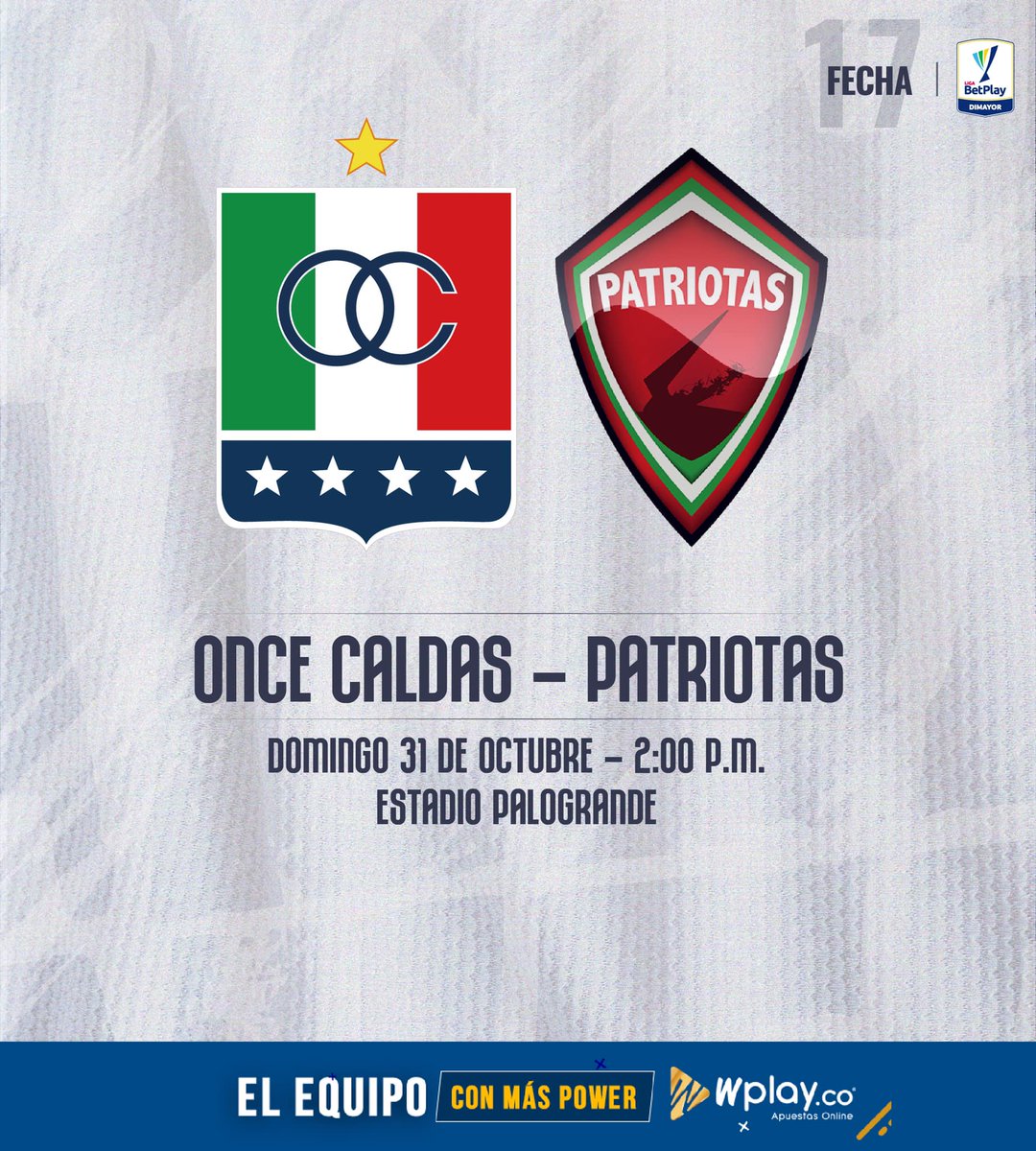 Si eres un usuario registrado de bet365 disfruta videos. Once Caldas vs Patriotas FC Fútbol. The match is a part of the Primera A Finalizacion. Once Caldas y Patriotas se ven las caras por la fecha 17 de la Liga Betplay de Colombia HOY domingo 31 de octubre.